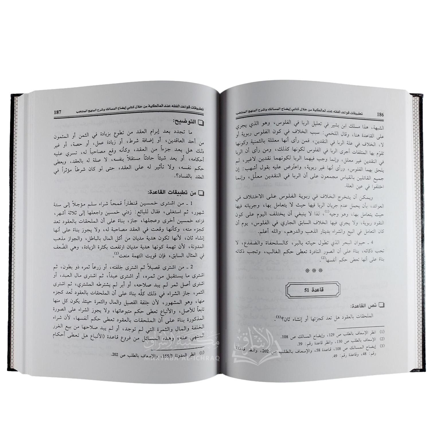 تتجلى أهمية هذا الكتاب في عدة جوانب، أبرزها كونه دراسة تطبيقية متخصصة تُعنى برد الفروع الفقهية إلى أقواعدها الفقهية، وهي خطوة ضرورية في بناء الفهم المنضبط للفقه. ويستمد الكتاب خصوصيته من اعتماده على مصدرين من أهم مصادر الفقه المالكية : كتاب إيضاح المسالك للإمام الونشريسي، وكتاب شرح المنهج المنتخب للإمام المنجور