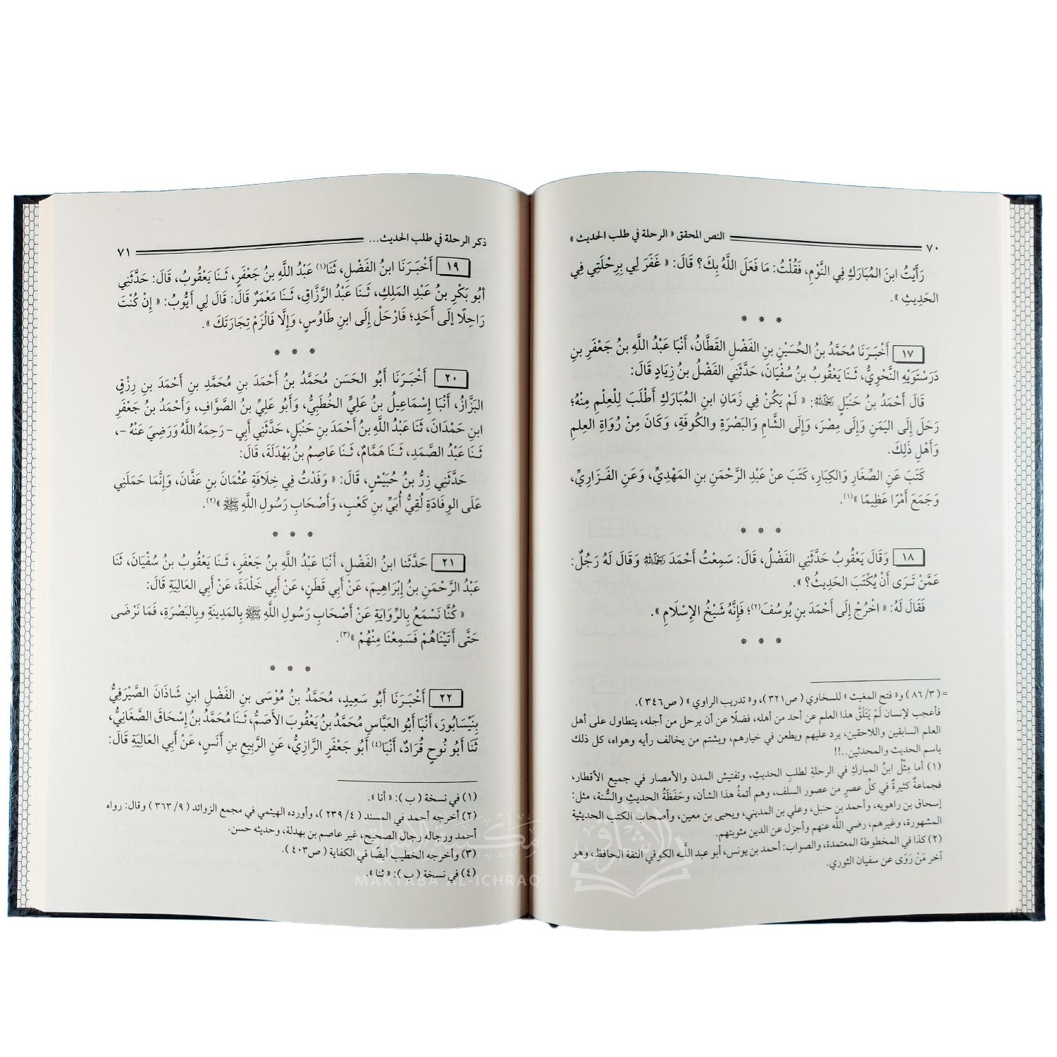 كتاب « الرحلة في طلب الحديث » للإمام الحافظ الخطيب البغدادي (ت 463هـ)، هو من الكتب النفيسة ومن أميز ما أُلّف في الرحلة لطلب الحديث النبوي الشريف، وهو موضوع يعبّر عن منزلة السنة في نفوس العلماء، وعلو همم المحدثين في تحصيلها