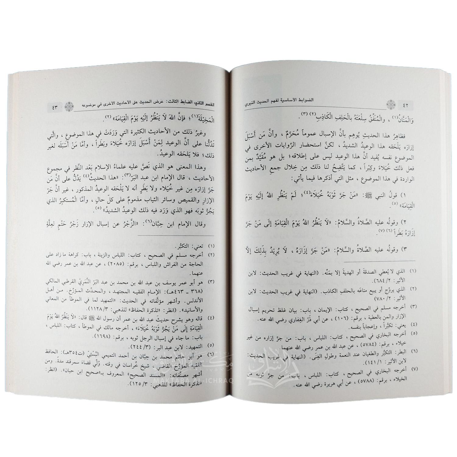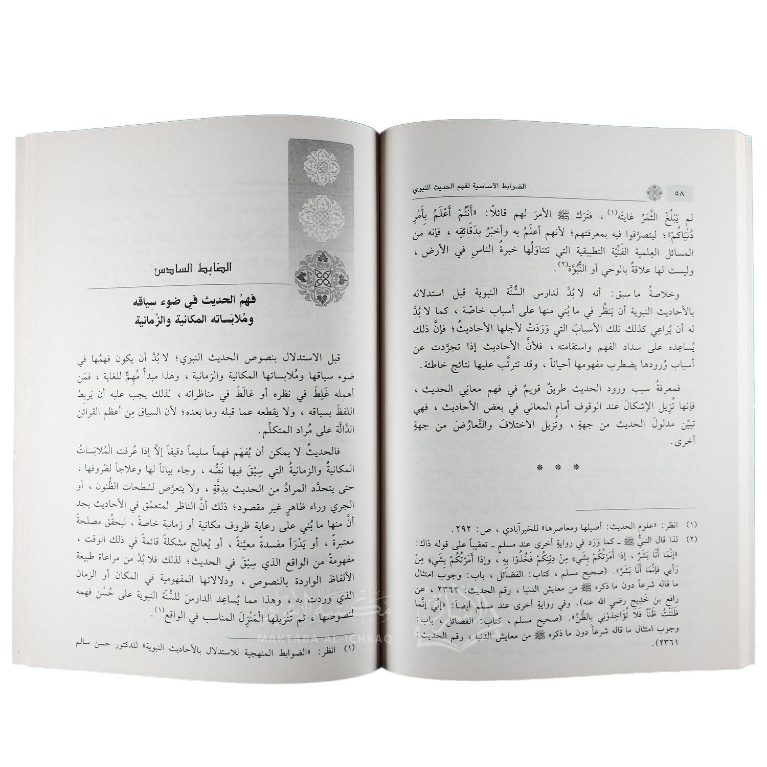 يُركِّز المؤلف على أهمية التسلح بصحة الفهم، وجودة الفقه، وحسن القصد، وسلامة الإدراك عند التعامل مع الأحاديث النبوية. وقد صيغت هذه الضوابط بأسلوب سهل ومبسَّط، مع أمثلة توضيحية من الأحاديث والآثار، مما يجعلها مفهومة للطلاب والمشتغلين في هذا المجال