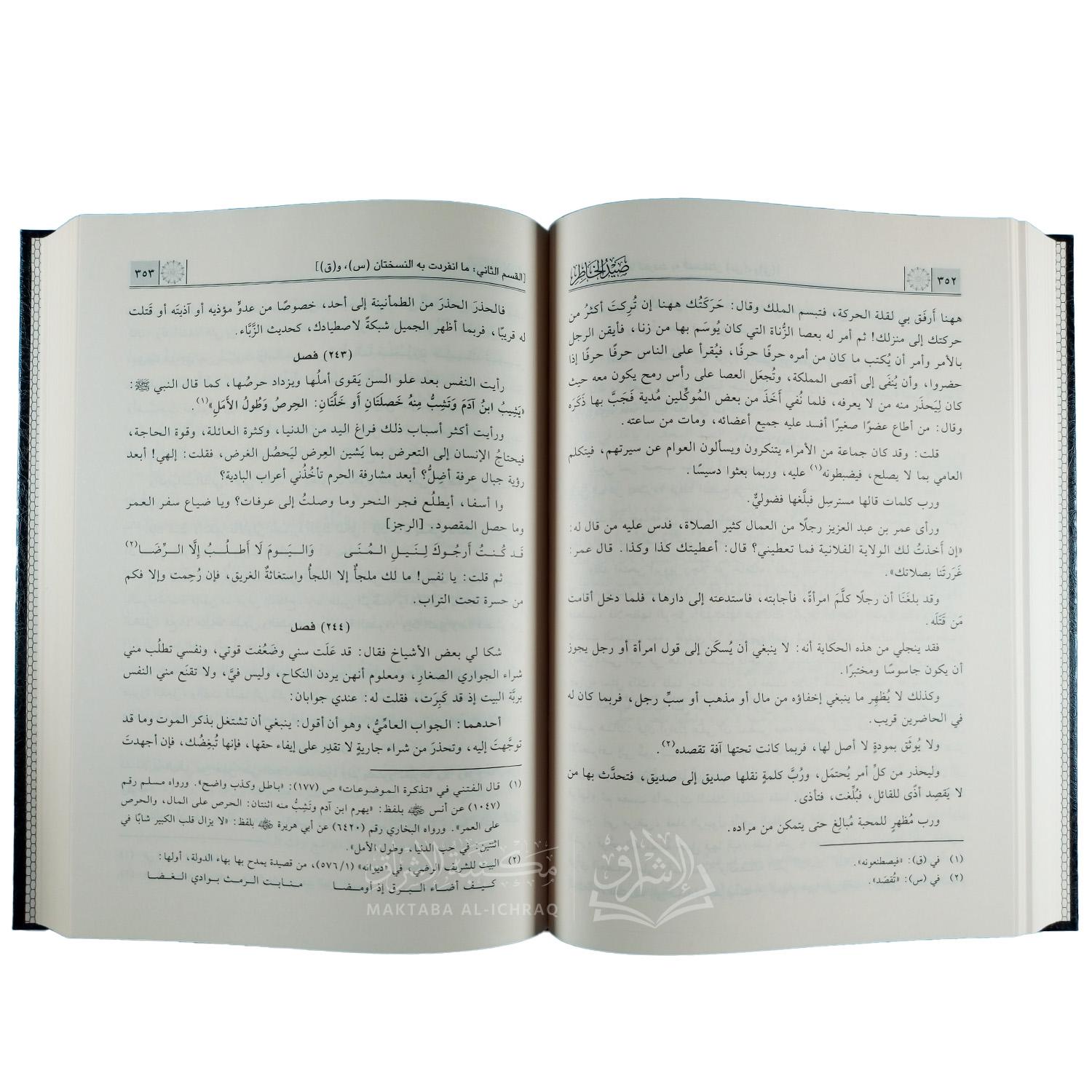 وعليه، فإن هذا الكتاب يعد من أفضل الكتب التي أُلفت في بابه، إذ إن مؤلفه جلس طيلة حياته يتصيّد الخواطر ويسجّلها حتى تكون عبرة لمن يعتبر، ويعم النفع بها. وقد جعله كثير من العلماء وأرباب السلوك مرجعًا في تزكية النفس، والتربية الإيمانية، والتأملات الفكرية، ولا يزال إلى اليوم محبوبًا لما فيه من قرب، وصدق، ونفع لا يُمل