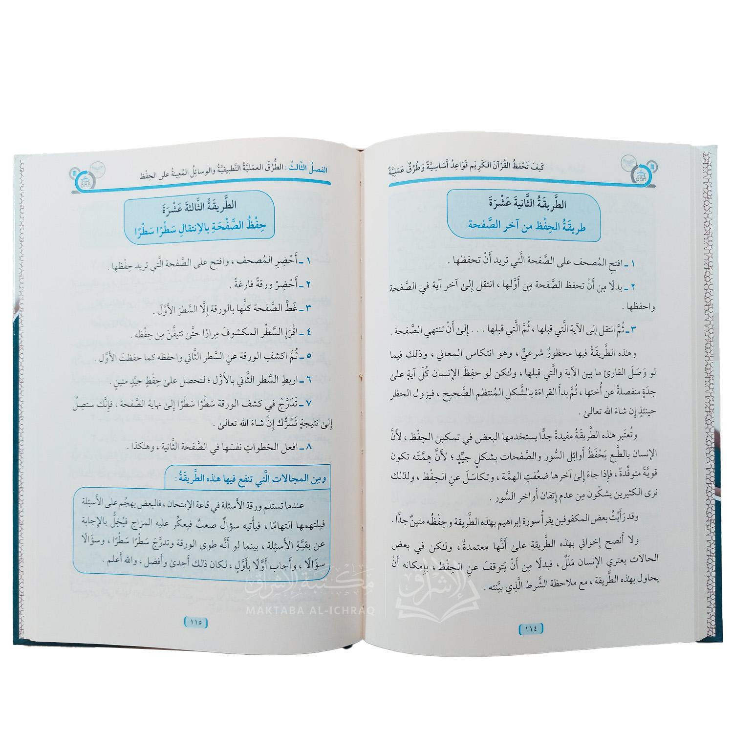 يحتوي الكتاب على أكثر من عشرين طريقة عملية مجرّبة تساعد الراغبين في حفظ القرآن، ويُراعي من خلالها الفروق الفردية بين الحفّاظ، سواء من حيث السن أو القدرة أو الوقت المتاح. كما يعرض الكتاب خطوات منهجية لحفظ متقن، ونصائح فعالة لتثبيت ما تم حفظه من خلال المراجعة المنتظمة، بالإضافة إلى توجيهات خاصة للمعلمين والمربين في كيفية تدريب الطلاب على الحفظ بأسلوب مشوق وفعّال