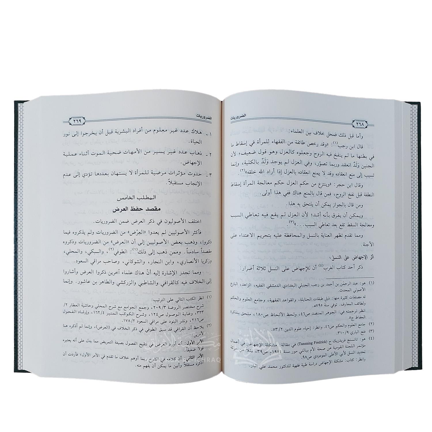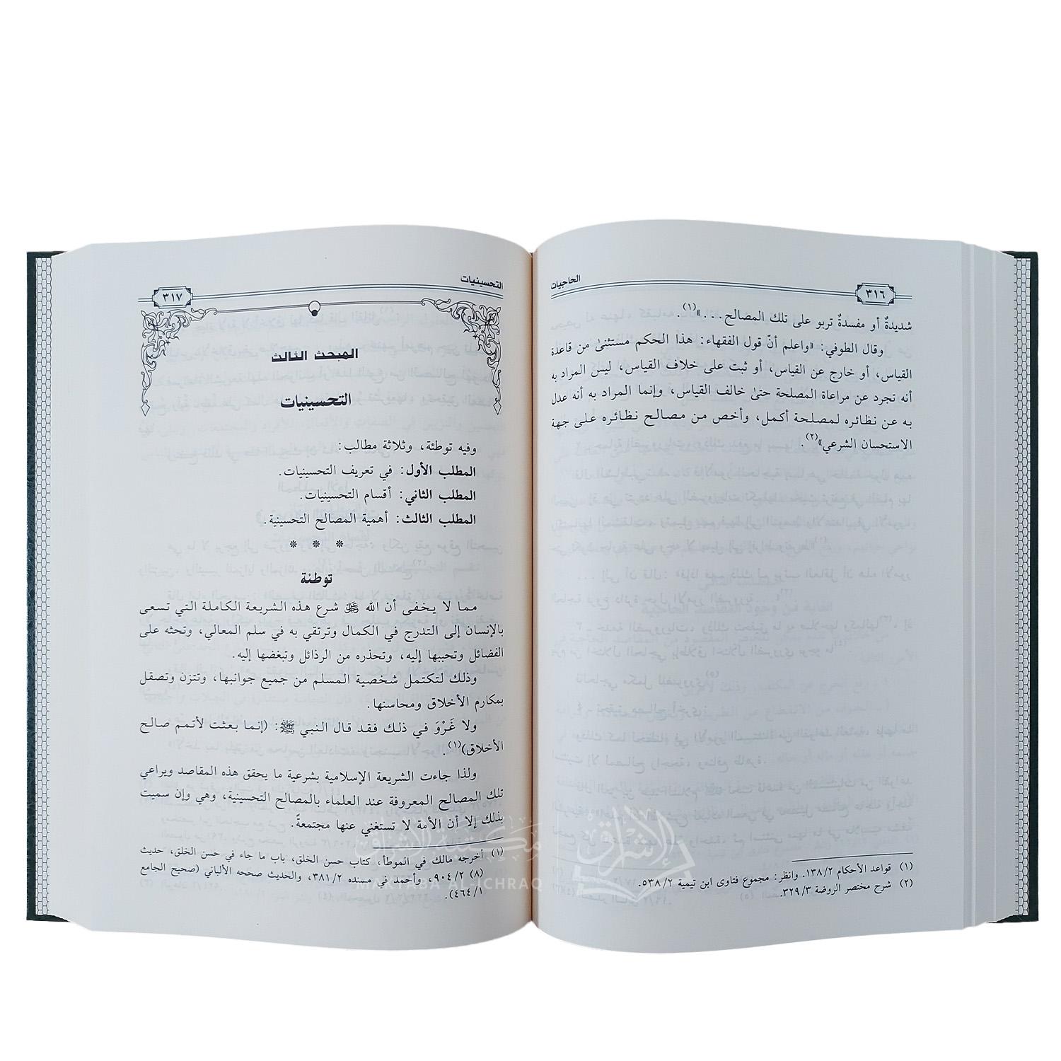كما عرض المؤلف إلى مراتب المقاصد : الضروريات، الحاجيات، التحسينيات، وبيّن أهمية المقاصد في ضبط عملية الاستنباط الفقهي وترشيدها، مع توثيق علمي دقيق للنقول، وتحليل دلالي ومنهجي للمفاهيم والأدلة